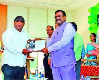 लोकमत न्यूज नेटवर्कनाशिक : राज्यस्तरीय छायाचित्र स्पर्धेत सामाजिक वनीकरण विभागातील द्वितीय क्रमांकाचा पुरस्कार ‘लोकमत’चे छायाचित्रकार प्रशांत खरोटे यांना राज्याचे वनमंत्री सुधीर मुनगंटीवार यांच्या हस्ते प्रदान करण्यात आला. नागपूर येथे आयोजित सोहळ्यात खरोटे यांना सन्मानपत्र आणि रोख रक्कम देऊन गौरविण्यात आले. वनमहोत्सवानिमित्त वन- विभागाच्या वतीने राज्यस्तरीय छायाचित्र स्पर्धेत सामाजिक वनीकरण विभागातील द्वितीय क्रमांकाचा पुरस्कार खरोटे यांना जाहीर झाला होता. या पुरस्काराचे वितरण मुनगंटीवार यांच्या हस्ते झाले. या कार्यक्रमप्रसंगी आदिवासी विकास व वने राज्यमंत्री अंबरिशराव आत्राम, आमदार अनिल सोले, समीर मेघे, डी. मल्लिकाअर्जुन रेड्डी, विभागीय आयुक्त अनुपकुमार, प्रधान मुख्य वनसंरक्षक के. एस. खवारे, मुख्य वनरक्षक संजीव गौर आदी मान्यवर उपस्थित होते.