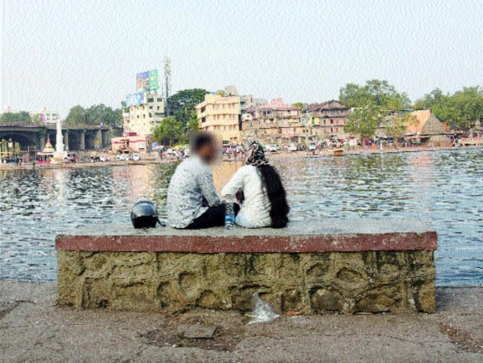 नाशिक : मुंबईतील गर्दीच्या ठिकाणी एकांताच्या शोधात असलेली अनेक प्रेमीयुगुले दादर चौपाटी, गिरगाव चौपाटी, मरीन ड्राइव्ह यांसारख्या परिसरात एकमेकांच्या सहवासात रमताना दिसतात. हाच ट्रेण्ड नाशिकमध्ये फाळके स्मारक, गंगापूरचा बॅक वॉटर परिसर, सोमेश्वर तपोवन परिसरातही पहायला मिळत होता. परंतु, आता हा प्रकार चक्क गोदाघाटसारख्या शहरातील मध्यवर्ती भागात सर्रास घडताना दिसून येत असून, गोदाघाटाचा परिसरही प्रेमीयुगुलांचा अड्डा बनत असल्याचे चित्र दिसून येत आहे.महापालिकेने भारतीय सिनेसृष्टीचे जनक दादासाहेब फाळके यांच्या नावाने उभारलेले फाळके स्मारक नियोजनशून्य कारभारामुळे झाकोळले असले तरी कोट्यवधी रुपये खर्च करून साकारलेला या परिसरात प्रेमीयुगुलांचा वावरही वाढल्याने नागरिकांसह पर्यटकांकडून नाराजी व्यक्त होऊ लागलेली आहे. हाच प्रकार पांडवलेणी, सोमेश्वर, तपोवन, गंगापूरच्या पाणलोट क्षेत्रातील विविध परिसरांत दिसून येत आहे.परंतु या भागात कमी वर्दळ असल्याने गुन्हेगारी प्रवृत्तीच्या टवाळखोर व समाजकंटकांकडून अशा जोडप्यांना त्रास होऊ लागल्याच्या घटना घडल्या होत्या. त्यामुळे या भागात फिरण्यासाठी जाणाऱ्या जोडप्यांनी आता शहरातील मध्यवर्ती ठिकाण असलेल्या गोदाघाटावर अड्डा बनवला असून, गांधी तलावाच्या काठासह, देवमामलेदार पटांगण, भाजी मंडई पटांगण आणि गोदा परिसरात नदीच्या पात्रात बनविण्यात आलेल्या घाटाच्या पायऱ्यांवर बसून खुलेआम अक्षेपार्ह वर्तन करताना ही जोडपी दिसून येतात.विशेष म्हणजे गोदाघाटावर राज्यासह देश-विदेशांतून धार्मिक पर्यटनासाठी अनेक भाविक येतात. त्यांच्यासमोर नाशिकची अशी प्रतिमा निर्माण होणे नाशिकच्या धार्मिक आणि सांस्कृतिक लौकिकाला धक्का पोहोचविणारी असल्याची प्रतिक्रिया परिसरातील शहरवासीयांमध्ये व्यक्त होत आहे.पायबंद घालण्याची मागणीगोदाघाट हा प्रेमीयुगुलांचा अड्डा बनला असून, गांधी तलावाच्या काठासह देवमामलेदार पटांगण, भाजी मंडई पटांगण आणि गोदा परिसरात नदीच्या पात्रात बनविलेल्या घाटावर बसून प्रेमीयुगुल खुलेआम आक्षेपार्ह वर्तन करतात. याला पायबंद घालण्याची मागणी होत आहे.