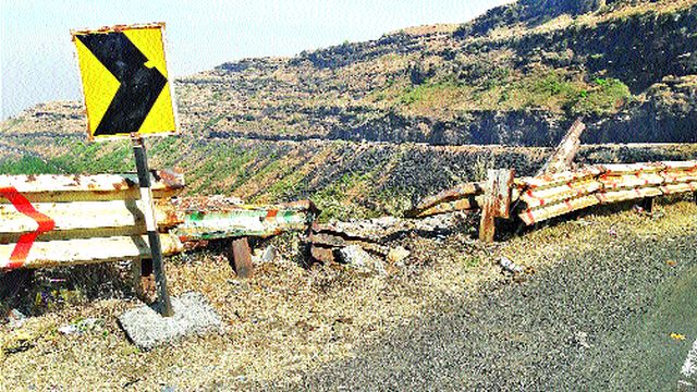 सप्तशृंगगड : उत्तर महाराष्ट्राचे आराध्यदैवत व लाखो भाविकांचे श्रद्धास्थान सप्तशृंगगड घाटातील संरक्षक कठडे व लोखंडी बॅरिकेट्स अजून किती जणांचा बळी घेणार, असा संतप्त सवाल वाहनचालक व भाविक करीत आहेत.येत्या १३ एप्रिलपासून सप्तशृंगगडावर मोठ्या उत्साहात चैत्रोत्सव सुरू होणार असून, यात्रा कालावधीत खासगी वाहनांना बंदी घातली असल्याने लाखो भाविकांना एसटीनेच प्रवास करावा लागतो. इतर दिवशीही ट्रॅव्हल, स्थानिक गाड्या व भाविक स्वत:ची वाहने घेऊन दररोज हजारो भाविक दर्शनासाठी येत असतात. परंतु नांदुरी ते सप्तशृंगगडाचा दहा किलोमीटरचा प्रवास भाविकांना अगदी जीव मुठीत घेऊन करावा लागत आहे. त्यामुळे या चैत्रोेत्सवातही भाविकांना एसटीत प्रवास करताना जीव मुठीत घेऊन प्रवास करावा लागणार आहे.गेल्या सहा महिन्यांपूर्वीच नवरात्र उत्सवानंतर पूजेचे साहित्य घेऊन जाताना गडावरील गणेश घाटात टेम्पोचालकाचा ताबा सुटल्याने अवघड वळणावर सातशे ते आठशे फूट दरीत जाता जाता बॅरिकेटसला वाहन अडकल्याने मोठी दुर्घटना टळली होती. परंतु गेल्या सहा महिन्यांपासून येथील बॅरिकेटस तुटले असून, ते बदलण्याची तसदीदेखील सार्वजनिक बांधकाम विभागाने घेतली नसल्याचा आरोप ग्रामस्थांनी केला आहे.संरक्षणासाठी लोखंडी बॅरिकेटस लावण्यात आले आहे; परंतु सध्या लोखंडी बॅरिकेटसचे हाल झाले आहेत. काही ठिकाणच्या अपघाती वळणावरचे लोखंडी बॅरिकेटस गायब झालेले दिसत आहे.अपघाती वळण काही बॅरिकेटस तुटलेल्या व वाकलेल्या अवस्थेत त्याच ठिकाणी पडलेले असून, गणेश घाटातील हे अपघाती व अवघड वळण असल्याने येथील वळणावरील येणारी व जाणारी वाहने दिसत नाहीत व येथीलच बॅरिकेटस तुटले असल्याने अपघाताची भीती आहे. सार्वजनिक बांधकाम विभागाचा याबाबत भोंगळ कारभार पहायला मिळत आहे.