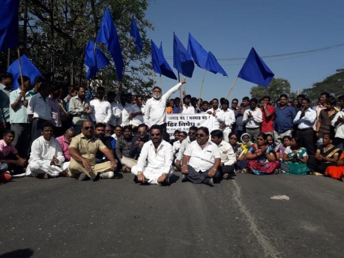मनमाड (नाशिक) : केंद्रीय सामाजिक न्यायमंत्री रामदास आठवले यांना धक्काबुक्की करून अपमानीत केल्याच्या प्रकाराचे पडसाद मनमाड शहरात उमटले. रिपाई शहर शाखेच्या वतीने शहरातून मोर्चा काढून इंदूर पुणे महामार्गावर रास्ता रोको आंदोलन करण्यात आले. या घटनेच्या निषेधार्थ शहरात आज कडकडीत बंद पाळण्यात आला. बंदमुळे शहराच्या प्रमुख बाजारपेठेत शुकशुकाट जाणवत होता.