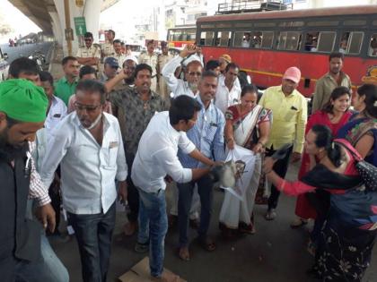 शिवरायांच्या अवमानाचा निषेध : भाजपाच्या श्रीपाद छिंदमच्या छायाचित्रांवर द्वारका येथे मारले जोडे !