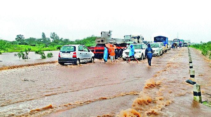 लोकमत न्यूज नेटवर्कनाशिक : गेल्या दहा दिवस संततधार सुरू असतानाच शनिवारी रात्रभर आणि रविवारी दिवसभर झालेल्या मुसळधार पावसामुळे जिल्ह्यातील नदी-नाले यांना मोठे पूर येत अनेक नद्यांनी धोक्याची पातळी गाठल्याने अनेक पूल पाण्याखाली गेल्याने गावांचा संपर्कतुटला आहे. सायखेडा-चांदोरीला पुराच्या पाण्याने वेढा दिला असून, इगतपुरी तालुक्यात अनेक गावांचा संपर्क तुटला आहे. निफाड परिसरात द्राक्षबागांसह शेती पाण्याखाली आली असून सिन्नरच्या देवनदीला महापूर आला आहे.नाशिक-कळवण रस्त्यावरील कोळवण नदीवरील पुलावरून पाणी असल्याने सकाळी १० पासून वाहतूक ठप्प आहे. गुजरात, सप्तशृंगगड, सुरगाणा, कळवण जाणारी वाहने रस्त्यावर उभी आहे. वाघाड उजवा कालवा मडकीजामजवळ फुटला आहे; मात्र तो नदीशेजारी फुटल्याने कोणतीही हानी झालेली नाही. वाघाड धरण ओव्हरफ्लो झाले असून, करंजवण पुणेगाव धरण ८० टक्के भरल्याने त्यातून पाण्याचा विसर्ग सुरू आहे.पालखेड धरणातून मोठ्या प्रमाणात पाण्याचा विसर्ग सुरू असून, कादवा नदीलाही मोठा पूर आला आहे. दिंडोरी शहरातून जाणाऱ्या धामण नदीला मोठा पूर आला असून, पालखेड रोडवरील पूल पाण्याखाली जात तालुक्याचा पूर्व भागाशी संपर्कतुटला आहे. दिंडोरी शहरातून पालखेड, पिंपळगाव, ओझरकडे जाणारा, उमराळे पेठकडे जाणारा, वणी ननाशीकडे जाणाºया विविध रस्त्यांचे पुलावर तसेच नाशिककडे जाणाºया रणतळ येथे रस्त्यावर पाणी आल्याने सर्वत्र वाहतूक ठप्प होत तालुक्याशी संपर्कतुटला. गोदाकाठ परिसरात सायखेडा, चांदोरीत हजारो नागरिक सुरक्षितस्थळीसायखेडा/चांदोरी : गंगापूर व दारणा धरणातून सुरू असलेला पाण्याचा विसर्ग आणि दिवसभर जिल्ह्यात सुरू असलेली संततधार यामुळे सायखेडा, चांदोरी गावांना पुराने वेढा दिला असून, सायखेडा येथील चौफुली, मेनरोड, तेलीगल्ली, भवानी पेठ, पोलीस ठाणे, बाजार समिती, चाटोरी रोड आदी भागात दहा ते बारा फूट उंचीपर्यंत पाणी शिरले आहे. त्यामुळे परिसरातील हजारो नागरिकांना आपत्ती व्यवस्थापन कर्मचाऱ्यांनी सुरक्षितस्थळी हलविले आहे. पेठ तालुक्यात विक्रमी पाऊस पेठ : शनिवार सकाळपासून पेठ तालुक्याला पावसाने अक्षरश: झोडपून काढले. त्यामुळे जनजीवन पूर्णत: विस्कळीत झाले आहे. सर्वच नद्या दुथडी भरून वाहत असून, सर्वच रस्ते पाण्याखाली गेल्याने जवळपास १०० पेक्षा अधिक गावांचा संपर्क तुटला आहे. पेठपासून जोगमोडीकडे जाणाºया संगमेश्वर नदीला मोठा पूर आला असून, त्यामुळे सुरगाण्याकडे जाणारे सर्व रस्ते बंद झाले आहेत. करंजाळी- हरसूल मार्गावरील फरशीवरून पाणी वाहत असल्याने वाहतूक विस्कळीत आली आहे. नद्यांनी धोक्याची पातळी ओलांडली असून, प्रचंड गतीने पाणी वाहत असल्याने धोकादायक स्थिती निर्मा
