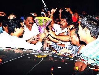 नाशिक : महाराष्ट्र नवनिर्माण सेनेचे अध्यक्ष राज ठाकरे तीन दिवस मुक्कामी दौऱ्यावर गुरुवारी रात्री उशिरा नाशकात दाखल झाले.मनसेच्या पदाधिकाऱ्यांनी त्यांचे फटाक्यांची आतषबाजी करीत जल्लोषात स्वागत केले. यावेळी मात्र माजी प्रदेश सरचिटणीस वसंत गिते यांच्यासह अतुल चांडक व सचिन ठाकरे अनुपस्थित होते. सायंकाळी साडेपाच वाजता येणार असलेले ठाकरे रात्री ९ च्या सुमारास पाथर्डी फाटा येथील हॉटेल एक्स्प्रेस इनमध्ये थेट दाखल झाले. त्यांच्या स्वागतासाठी महापौर अशोक मुतर्डक, माजी महापौर अॅड. यतिन वाघ, स्थायी समिती सभापती अॅड. राहुल ढिकले यांच्यासह बहुतांश नगरसेवक व जिल्हा पदाधिकारी हजर होते.