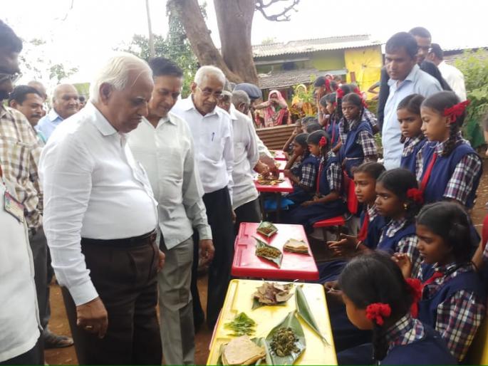 जिल्हा परिषद प्राथमिक शाळा चिंचलेखैरे येथे पोषण आहार माहे निमित्त रानभाजी महोत्सवाची पहाणी करतांना ज्येष्ठ नागरिक संघ पदाधिकारी.