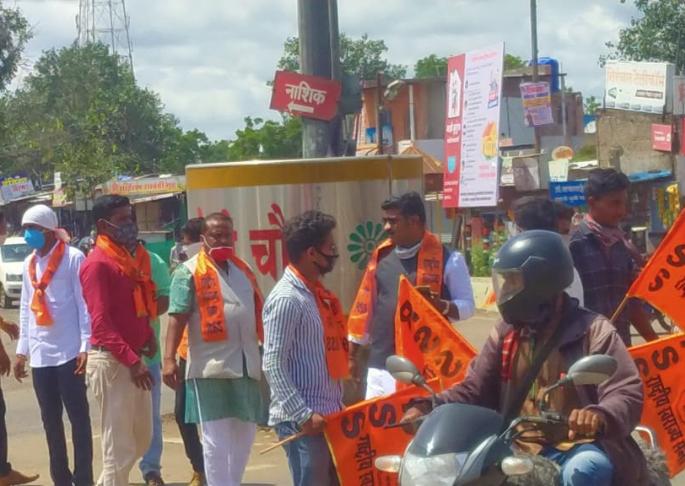 सदर आंदोलनात राष्ट्रीय स्वराज्य सेनेचे पवन चव्हाण, विकास बागल, दत्तात्रय पैठणकर, हर्ष म्हस्के, दतात्रय बोरनारे, विनोद गोतीस, आकाश भागवत, वैभव ढाकणे आदींसह पदाधिकारी व कार्यकर्ते सहभागी झाले होते. (फोटो आर एस एस)