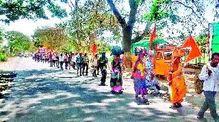 ब्राह्मणगाव : चैत्र पोर्णिमेनिमित्त खान्देशचे कुलदैवत श्री सप्तशृंगी मातेच्या गडावर पायी जाणाऱ्या भाविकांची कडक उन्हातही गर्दी दोन दिवसांपासून वाढली आहे. दरवर्षी जळगाव, धुळे, नंदुरबार, मध्य प्रदेशच्या खेतियापासून देवीचे भाविक मोठ्या संख्येने पायी जातात. यावर्षी तर उन्हाची तीव्रता खूपच वाढली आहे, मात्र भाविकांची आपल्या कुलदेवते प्रति आस्था दृढ असून, न थकता भाविक मोठ्या संख्येने पायी जात आहेत. सटाणा-मालेगाव रस्त्यावर ब्राह्मणगावपर्यंत रस्त्याने जाणाऱ्या पायी भाविकांसाठी अवजड वाहनांमुळे वाहतुकीला अडचण निर्माण होत होती, तेव्हा सटाण्याकडून येणारी अवजड वाहनांची वाहतूक फिरवण्यात आली. भाविकांसाठी ठिकठिकाणी मोफत नाश्ता, जेवण, पाण्याची व्यवस्था करण्यात आली आहे.