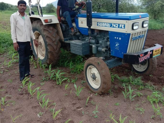 नवी शेमळी येथे मका पिकावर फिरवला रोटर