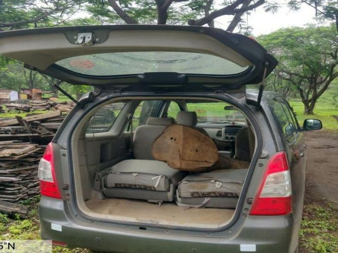 पथकाने कारची झडती घेतली असता मागील बाजूने सीट खाली करुन घेत सागाचा मोठा बुंधा टाकलेला आढळून आला.