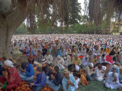 शहरातील ईदगाहवर सकाळी साडे आठ वाजेपासूनच मुस्लीम बांधवांचे आगमन सुरू झाले होते. तासाभरात निम्म्यापेक्षा अधिक मैदान गर्दीने फुलले. धर्मगुरू मौलाना मुफ्ती महेबुब आलम यांचे प्रवचन सुरू झाले.