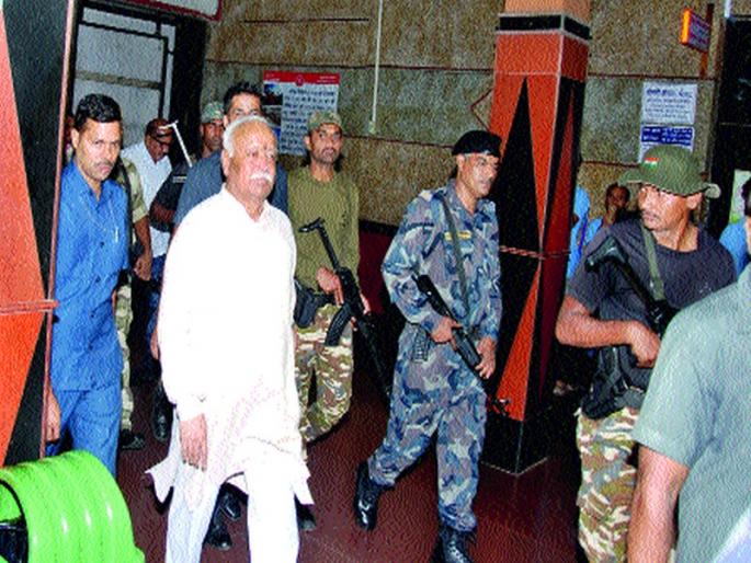 शिर्डी येथे एका धार्मिक संमेलनासाठी मोहन भागवत यांचे मंगळवारी (दि. २२) आगमन झाले. सायंकाळी नाशिकरोड रेल्वेस्थानकावर त्यांचे आगमन होणार असल्याने पोलिसांचा कडेकोट बंदोबस्त ठेवण्यात आला होता. शिर्डी येथील एका धार्मिक कार्यक्रमासाठी भागवत जाणार असून, तेथून ते नाशिकला परततील. बुधवारी (दि.२२) नाशिकमध्ये ते इंदिरानगर परिसरात संघाचे पश्चिम महाराष्टÑ प्रांत प्रचारप्रमुख दिलीप क्षीरसागर यांच्याकडे मुक्कामी असून, गुरुवारी (दि.२३) ते जनशताब्दी एक्स्प्रेसने मुंबईस रवाना होणार आहे. भागवत हे अनेकदा नाशिकला आले असले तरी त्यांचा मूळ शिर्डी दौरा असून, त्यामुळेच नाशिकमध्ये कोणताही कार्यक्रम नसल्याचे सांगितले जात आहे.