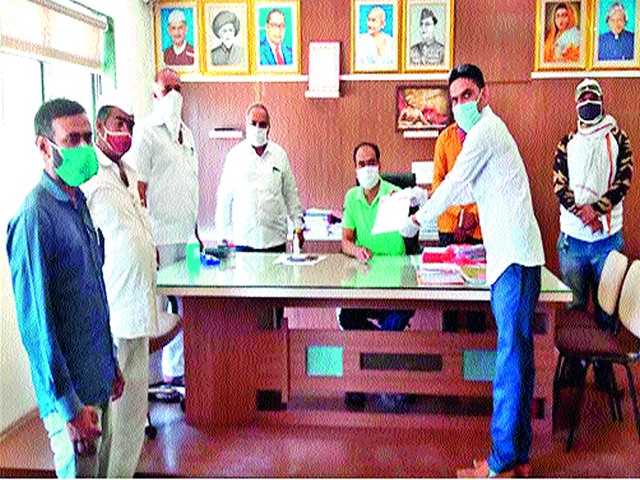 चांदवड येथे तहसीलदार प्रदीप पाटील यांना निवेदन देताना शिवसेना तालुकाप्रमुख शांताराम ठाकरे, संपतराव वक्ते, चंद्रकांत देवरे, साहेबराव गुंजाळ, गोरख हिरे, दीपक भोयटे आदी.