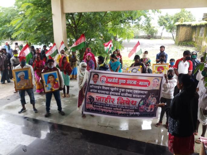 श्रमजीवी संघटनेचा पंचायत समिती कार्यालयावर आॅनलाइन शिक्षणाच्या धोरणा विरोधात मोर्चा