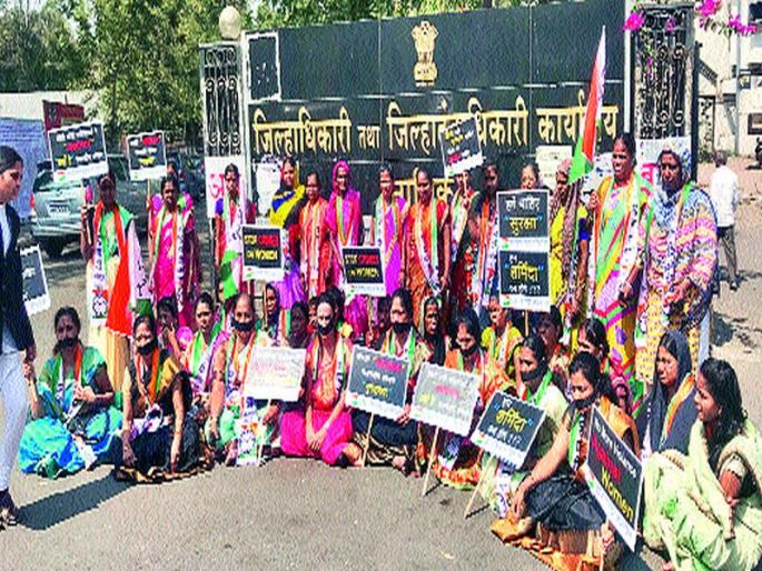ठळक मुद्देतोंडाला काळ्या फिती बांधून आंदोलन महिलांवर अत्याचार करू नका’ असे फलक हातात