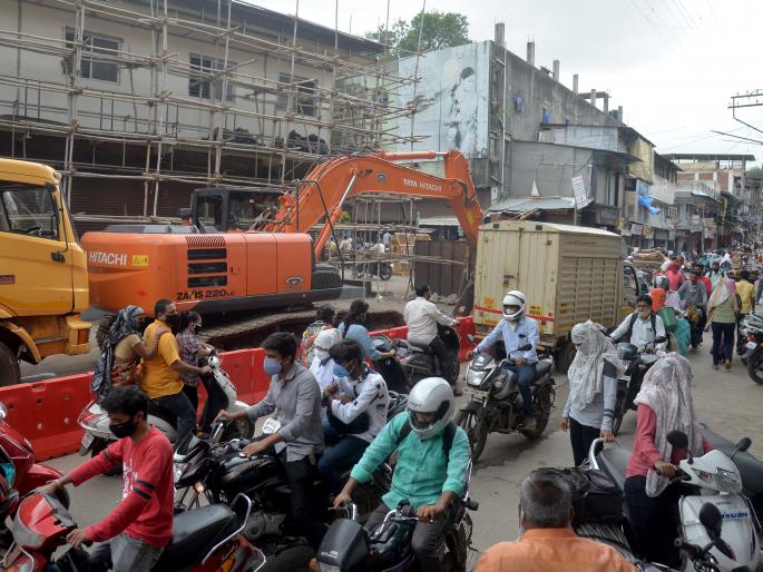 नाशिक : स्मार्ट सिटीअंतर्गत पहिल्या टप्प्यात मेनरोडवरील धुमाळ पॉइंट अर्थात वंदे मातरम चौकापासून जिजामाता चौकापर्यंतचा रस्ता विकसित करण्यात येणार आहे. शहरातील मुख्य बाजारपेठेच्या परिसरातील हा भाग आहे. तसेच पावसाळा सुरू झाला असताना या रस्त्याच्या विकासाचा घाट घातला जात आहे. स्मार्ट सीटीच्या कामाचा पूर्वानुभव बघता या ठिकाणी मोठा खोळंबा होण्याची चिन्हे आहेत.स्मार्ट सिटीअंतर्गत केल्या जाणाऱ्या रस्ते विकासाच्या कामामुळे शहर वाहतूक नियंत्रण शाखेकडून वाहतूक मार्गात बदलाची अधिसूचना काढण्यात आली आहे. स्मार्ट सिटीच्या कामाला अडथळा होऊ नये, यासाठी पहिल्या टप्प्यात जिजामाता चौकापासून ते गाडगेमहाराज पुलाकडे जाणाºया दहीपुलाच्या रस्त्यावर सर्व प्रकारच्या वाहनांना बंदी घालण्यात आली आहे. तसेच दुसºया टप्प्यात वंदे मातरम चौक (धुमाळ पॉइंट) ते जिजामाता चौकापर्यंतच्या कामाला प्रारंभ केला जाणार आहे, असे उपायुक्त पौर्णिमा चौगुले यांनी काढलेल्या अधिसूचनेत म्हटले आहे; मात्र पावसाळ्यात या गजबजलेल्या परिसरात ही कामे हाती घेणे कितपत योग्य आहे? असा सवाल या भागातील नागरिकांनी उपस्थित केला आहे...तर पाण्यात बुडेल बाजारपेठया जाणाºया रस्त्यांच्या कामामुळे दहीपूल, धुमाळपाइंट, जिजामाता चौक या उंचसखल भागात खट्टे खोदले जाणार आहे. यामुळे पावासाचे पाणी या भागात अधिक प्रमाणात साचेल आणि पाण्याचा निचरा होण्यासही अडथळा निर्माण होईल, यामुळे बाजारपेठ मोठा पाऊस झाला तर बुडण्याचाही धोका आहे. काही दिवसांपूर्वीच या भागात निसर्ग चक्र ीवादळाच्या प्रभावामुळे झालेल्या जोरदार पावसाने पाणी साचले होते. सरस्वती नाला येथे ओसंडून वाहतो आणि सराफ बाजार ते दहीपूल असा सर्व परिसर पाण्याखाली दरवर्षी जातो.पर्यायी मार्ग असा...मेनरोडवरील वंदे मातरम चौकाकडून जिजामाता चौकाकडे जाणाºया वाहनांनी थेट गाडगे महाराज पुतळामार्ग विजयानंद चित्रपटगृहासमोरून थेट साक्षी गणेश मंदिरामार्गे पुढे मार्गस्थ होतील. तसेच रविवार कारंजावरून खाली येत बोहरपट्टीकडे वळण घेत सराफ बाजारातून पुढे पर्यायी मार्गाने वाहनचालकांना जाता येईल, असे अधिसूचनेत म्हटले आहे.एकीकडे लॉकडाऊन काळात व्यवासाय पूर्णत: ठप्प झाला होता. या रस्त्यांच्या कामामुळे व्यावसायिक वर्गही धास्तावला आहे.