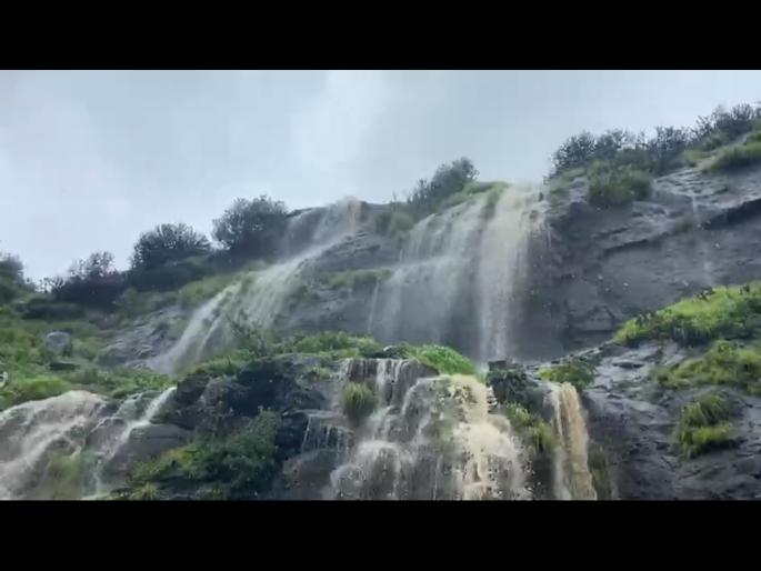 सप्तशृंग गडावर जोरदार पर्जन्यवृष्टी धबधब्याच्या नयनमनोहारी दृष्याचे सोशल मिडीयावर
