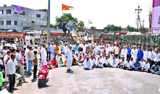 केंद्र व राज्य सरकारच्या चुकीच्या धोरणामुळे दिवसेंदिवस महागाई वाढत आहे. त्यातच चुकीची व अन्यायकारक शेतकरी कर्जमाफी आणि विजेच्या वाढत्या भारनियमनच्या निषेधार्थ आज दुपारी राष्ट्रवादी कॉँग्रेसने येथील छत्रपती शिवाजी महाराजांच्या पुतळ्याजवळ ठिय्या देऊन एक तास साक्री शिर्डी महामार्ग रोखून धरला.