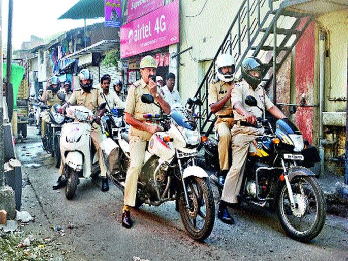 नाशिक : दोन समाजामध्ये किरकोळ कारणावरून झालेला तणाव, गौसियाची मिरवणूक आणि त्यानंतर लागलीच येणाºया ३१ डिसेंबरच्या पार्श्वभूमीवर भद्रकाली पोलीस ठाण्याच्या हद्दीत शुक्र वारी (दि.२९) पोलिसांनी रुटमार्च केला. दंगा नियंत्रण कार्यवाहीची रंगीत तालीम करताना पोलिसांनी यावेळी दुचाकीवाहनांचा वापर केला.