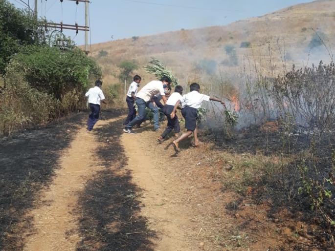 शाळेतल्या विद्यार्थ्यांनी विझवला वणवा...