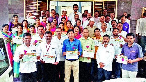 तालुक्यातील द्याने केंद्रातील सर्व शाळांनी नुकतेच स्वतंत्र ब्लॉग तयार केले आहेत. या शाळांमधील तंत्रस्नेही शिक्षक व मार्गदर्शक अधिकाºयांचा येथील पंचायत समितीतर्फे गौरव करण्यात आला होता. याप्रसंगी पंचायत समितीच्या सभापती सूर्यवंशी बोलत होत्या. व्यासपीठावर उपसभापती अनिल तेजा, पंचायत समिती सदस्य अरुण पाटील, गणेश खैरनार, भगवान मालपुरे, नंदलाल शिरोळे, शंकर बोरसे, बापू पवार, सुरेखा ठाकरे, सुवर्णा देसाई, सरला शेळके, कमलबाई मोरे, गटविकास अधिकारी आनंद पिंगळे, द्याने केंद्रप्रमुख शारदा पवार आदींसह पदाधिकारी उपस्थित होते. सूर्यवंशी पुढे म्हणाल्या की, विद्यार्थ्यांना प्रगत करण्यासाठी आधुनिक तंत्रज्ञानाचा वापर करावा जेणेकरून स्पर्धेत विद्यार्थी टिकून राहतील. यावेळी गटविकास अधिकारी आनंद पिंगळे म्हणाले की, जि. प. शाळांच्या विकासातील अडथळ्यांची शर्यत पार करून सर्व शाळांचा स्वतंत्र ब्लॉग असलेले द्याने हे केंद्र राज्यातील पहिले केंद्र आहे. ही तालुक्यातील शैक्षणिक विकासातील मोठी प्रकाशवाट आहे. ब्लॉग निर्मितीबरोबरच ब्लॉग अपडेट ठेवणे तेवढेच गरजेचे आहे, तशी काळजी तंत्रस्नेह शिक्षकांनी घ्यावी, असे आवाहन केले. यावेळी उपसभापती तेजा, पंचायत समिती सदस्य अरुण पाटील, द्याने केंद्राच्या पवार, शिक्षक संघाचे तालुकाध्यक्ष पृथ्वीराज शिरसाठ, संदीप सूर्यवंशी यांनी मनोगत व्यक्त केले.