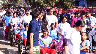 नाशिक : सगळे काही असूनही हार मानणारे अनेकजण आहेत. परंतु शारीरिक व्याधींवर मात करून जिद्दीच्या जोरावर आयुष्याचा मार्ग निवडणारे आदर्श असेच. अशाच शारीरिक दुर्बल मुलांनी हौसला दाखवित जिद्दीने धाव घेतली. टाळ्यांचा कडकडाट जणू या मुलांना एक एक पाऊल पुढे टाकण्यास प्रेरणा देत असे. अंध, अपंग, मतिमंद व शारीरिक व्याधींनी ग्रस्त असलेल्या मुलांसाठी आयोजित केलेल्या ‘हौसला मॅरेथॉन २०१५’मध्ये या मुलांनी आपल्यातील जिद्दीचे दर्शन घडविले. महात्मानगर मैदान ते एबीबी सर्कलपर्यंत आयोजित केलेल्या या रॅलीत हजारो मुलांनी व त्यांच्या पालक, शिक्षकांनी सहभाग घेतला. प्रत्येक पावलावर टाळ्या वाजवून या मुलांना हौसला दिला जात असे. त्यानंतर महात्मानगर मैदानावर आयोजित केलेल्या कार्यक्रमात या मुलांनी विविध कलाविष्कार सादर करीत आपल्यातील कलागुणांची चुणूक दाखविली. दृष्टिहीन मुलांनी सादर केलेल्या चित्तथरारक रोपमल्लखांब कसरतीला उपस्थितांकडून विशेष दाद मिळाली. स्त्रीभ्रूणहत्त्या, पर्यावरण, स्वच्छ नाशिक - सुंदर नाशिक अशा विविध विषयांवर यावेळी जनजागृती करण्यात आली. दरम्यान, कार्यक्रमाच्या प्रारंभी वनाधिपती विनायकदादा पाटील, पोलीस उपआयुक्त निसार तांबोळी, महाराष्ट्र पोलीस अकादमीचे सहायक संचालक हरिष बैजल, किरण चव्हाण, तेजल चव्हाण, जगबीर सिंग, युवराज पाटील, अनिकेत झवर, आशिष लकारिया, अक्षय धोंगडे, मृण्मयी राणे, जुईली वाणी यांनी मॅरेथॉनमध्ये सहभाग घेत विद्यार्थ्यांचा उत्साह वाढविला. गौरी चव्हाण, तन्वी देवरे, आर. जे. भूषण यांनी सूत्रसंचालन केले. (प्रतिनिधी)
