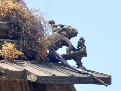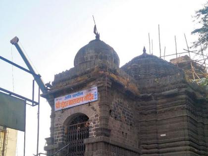 नव्याने दगड घडविण्यासाठी लागणारा कारागीरवर्ग तामिळनाडूमधील आहे. मंदिरासाठी लागणारे दगड नांदेडमधून आणले जात आहे. पहिल्या टप्प्याच्या बांधकाम दुरुस्तीसाठी राज्य पुरातत्व विभागाकडे मंत्रालयाकडून सुमारे पावणेपाच कोटी रुपयांचा निधीही प्राप्त झाला आहे. त्यानुसार कामाला प्रारंभ करण्यात आला असून, मुख्य शिखरावरील कळस क्रेनच्या सहाय्याने उतरविल्यानंतर रात्रीच्या सुमारास मंदिराच्या प्रांगणात उभ्या असलेल्या क्रेन, मालवाहू ट्रकच्या बॅटऱ्या अज्ञात चोरट्यांनी लंपास केल्याने कामाला सुरुवात झाल्याबरोबरच ‘विघ्न’ आले. त्यामुळे गेल्या दोन दिवसांपासून धोकादायक दगड उतरविण्याचे काम ठप्प झाले आहे.