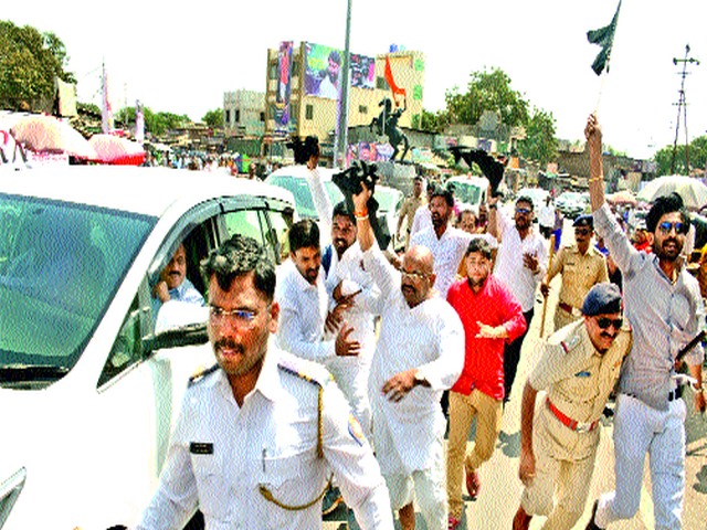 सटाणा येथे पालकमंत्री गिरीश महाजन यांना काळे झेंडे दाखविणारे कॉँग्रेस, राष्टÑवादीचे कार्यकर्ते.