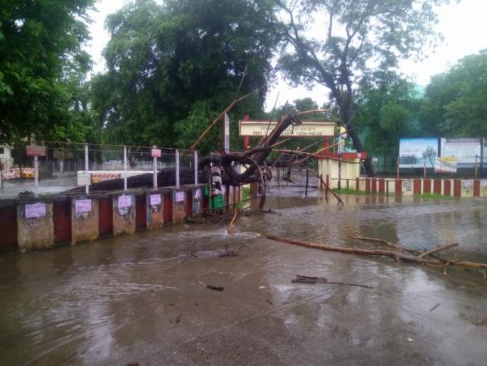ठळक मुद्देबीवायके महाविद्यलयाच्या वाहनतळात झाड कोसळले.कॉलेजरोडवर पाणी साचल्याने वाहतूक बंद