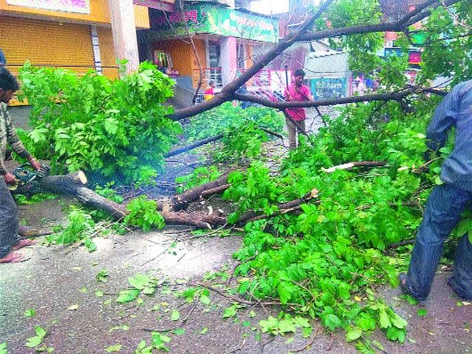 पंचवटी : गेल्या तीन ते चार दिवसांपासून सुरू असलेल्या पावसामुळे झाडांचे बुंधे भिजल्याने वृक्षांची पडझड सुरू झाली आहे. पंचवटीत पेठरोडवर सोमवारी सकाळी करंज वृक्ष कोसळला, तर दुपारी प्राचीन सीतागुंफा संस्थानजवळ वटवृक्षाची एक फांदी पत्र्यावर वाकली. सुदैवाने या दोन्ही घटनेत कोणतीही जीवितहानी झाली नाही. भाविकांना रांगेने उभे राहता यावे यासाठी तयार केलेल्या निवारा शेडवर फांदी आल्याने दुर्घटना टळली.पंचवटी अग्निशमन दल व उद्यान विभागाच्या वतीने तत्काळ घटनास्थळी धाव घेत पेठरोडला वृक्ष, तर सीतागुंफा संस्थानजवळ निवारा शेडवर वाकलेली फांदी बाजू काढण्यात आली. दुपारी घडलेल्या घटनेनंतर सीतागुंफा संस्थांमध्ये काहीकाळ भाविकांना दर्शन बंद केले होते. पेठरोड सिग्नल नजीक करंज वृक्ष असून, सोमवारी सकाळी बुंध्यापासून वृक्ष उन्मळून पडला. सकाळी वर्दळ कमी असल्याने कोणतीही दुर्घटना घडली नाही. दुपारी साडेतीन वाजेच्या सुमारास सीतागुंफा संस्थानजवळ असलेल्या वड, पिंपळ वृक्षाच्या फांद्या वाकून निवारा शेडवर आल्याने त्या कोसळण्याची दाट शक्यता निर्माण झाली होती. सदर घटना नागरिकांच्या लक्षात येताच तत्काळ अग्निशमन दल व उद्यान विभागाला माहिती दिली. त्यानंतर घटनास्थळी अग्निशमन व उद्यान विभागाच्या कर्मचारी- अधिकाऱ्यांनी धाव घेत वट व पिंपळाच्या फांद्या बाजूला काढण्याचे काम केले. याच परिसरात वीजतारा असल्याने वाकलेल्या वृक्षाच्या फांद्या काढण्यासाठी अडचण निर्माण झाली होती. वीज वितरण कंपनीने वीजपुरवठा खंडित केल्यानंतर क्रेनच्या सहाय्याने फांद्या बाजूला काढण्याचे काम केले. वृक्षाच्या वाकलेल्या फांद्या काढण्याचे काम सुरू असताना काहीवेळ रस्ता वाहतुकीसाठी बंद केला होता.जिल्हाधिकाऱ्यांच्या घरावर पडले झाडशहरात रविवारी (दि.२८) सहा ठिकाणी झाडे पडली. त्यात जिल्हाधिकाºयांच्या निवासस्थानीदेखील एक झाड पडल्याचे महापालिकेच्या सूत्रांनी सांगितले. सोमवारी (दि.२९)देखील सहा झाडे पडलीत त्यात त्र्यंबकरोडवर शासकीय वसतिगृहावरदेखील एक झाड पडले. शहरात धोकेदायक वृक्षांची पडझड सुरूच असून, महापालिकेने लक्ष घालावे, अशी मागणी होत आहे.