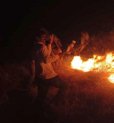 पंधरा ते वीस वनर्कमचारी आणि दीडशे गावकऱ्यांनी आपला जीव धोक्यात घालत रात्रीच्या काळोखात आग विझविण्यासाठी आटोकाट प्रयत्न सुरू केले. झाडांच्या तोडलेल्या ओल्या फांद्यांची ह्यझाडूह्ण तयार करत झोडपणी करून पेटलेले गवत विझवित होते. मात्र, वारा रात्री प्रचंड सुटल्याने भडकलेली आग काही करता शमत नव्हती. शुक्रवारी (दि.५) संध्याकाळी सात वाजल्यापासून भडकलेली आग शनिवारी सकाळी सात वाजेपर्यंत विझता विझत नव्हती. या आगीवर शनिवारी सकाळी आठ वाजता पूर्णपणे नियंत्रण मिळविण्यास यश आले.