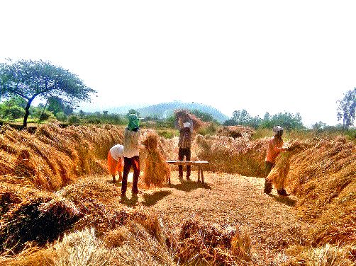 सर्वतीर्थ टाकेद : तालुक्याच्या पूर्व भागात भाताची सोंगणी जोमात सुरू झाल्याने मजुरांचा तुटवडा निर्माण झाला आहे. टाकेद भागात दोनशे रुपये व एक वेळचे जेवण व जेवण नसेल तर दोनशे पन्नास रूपये मजुरी दिली जात आहे. त्यातच कृषी विभागाने फक्त भात कापणीसाठी विकसित केलेले कापणीयंत्र सहाशे रुपये तासाने या परिसरात उपलब्ध झाल्याने या यंत्राला मोठ्या प्रमाणात मागणी वाढली आहे. या वर्षी सुरवातीपासुनच पावसाची सुरुवात चांगली झाली . ब-याच वर्षांनी पावसाने बळीराजाची दानादान ऊडवुन दिली. कवडदरा, धामनगाव , पिंपळगाव डुकरा , टाकेद परिसरामध्ये काही भागात नुकत्याच दिवाळीच्या सणामघ्ये पावसाने हजेरी लावल्याने हातातोंडाशी आलेला घास काही प्रमानात निसर्गाने हिसकाऊन घेतला . कवडदरा व अडसरा व टाकेदच्या काही भागातील शेतक-यांच्या भातपकावर आळीचा प्रादुर्भाव झाल्याने अनेक शेतक-यांचे मोठ्या प्रमानात नुकसान झाले आहे. या भागाकडे कृषी विभागाने काळजी पुर्वक लक्ष देण्याची गरज आहे असे सरपंच बाळासाहेब घोरपडे यांनी सांगितले. या यंत्राने जरी भात कापनी केली तरी धान्य वेगळे करण्यासाठी मजुरांचीच गरज लागत आहे. या भागात हार्वेस्टरही आहे. परंतु भात शेतीचे प्रमाण जास्त व मजुरांचे प्रमाण कमी आहे . यंत्रही कमी आहेत या मुळे शेतक-यांची धावपळ होत आहे.सध्या या भागात आर २४ ची लागवड कमी झाली आहे.पण अनेक प्रकारच्या नवनवीण भाताच्या जाती विकषीत झाल्याने उत्पन्नातही भर पडत आहे.या भागात इंद्रायनी.जय श्रीराम एक हजार आठ. ओम थ्री, रूपाली, सोनम व ज्ञानेश्वरी, दप्तरी इत्यादी भाताच्या वानांची पिके आलेली आहेत.