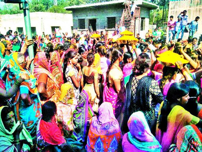 निºहाळे : प्रतिजेजुरी मºहळ येथील श्री खंडोबा महाराज यात्रेच्या पार्श्वभूमीवर देवाचा हळदी समारंभ बुधवारी अपूर्व उत्साहात पार पडला. जात्यावर सुमारे दोन क्विंटल हळद दळल्यानंतर काढण्यात आलेल्या मिरवणुकीत राज्यभरातून आलेल्या शेकडो महिला सहभागी झाल्या होत्या. प्रतिजेजुरी म्हणून प्रसिद्धी पावलेल्या सिन्नर तालुक्यातल्या मºहळ येथील खंडोबा महाराज यात्रेस गुरुवारी (दि. १) प्रारंभ होत आहे. यात्रेपूर्वी दळलेल्या हळद-भंडाºयाची मिरवणूक काढण्याची प्रथा आहे. यात्रेपूर्वी रथसप्तमीपासून हळद दळण्याची तयारी केली जाते. मºहळ येथील जय मल्हार बचतगटाच्या अध्यक्ष सुनंदाबाई आढाव यांच्या नेतृत्वाखाली महिलांनी जीपमधून प्रवास करीत नाशिक, पांगरी, सोमठाणे, निºहाळे, नांदूरशिंगोटे, दोडी, खंबाळे, वावी, येवला, वळदगाव, शिरसगाव लौकी, पिंपळखुटे, कोपरगाव, शिंगणापूर, तीन चारी, जोर्वे, संगमनेर, नाशिक या गावांतील महिलांना खोबºयाची वाटी व भंडारा देत यात्रेसाठी हळद दळण्याचे निमंत्रण दिले होते.यात्रेपूर्वी जात्यावर दळलेली हळद घेऊन यायची, तिची गावातून मिरवणूक काढायची व यात्रेसाठी देवाच्या चरणी अर्पण करायची अशी परंपरा आहे. गावागावांतील महिला या सोहळ्यात सहभागी झाल्या होत्या.पंधरा दिवसांपासून तयारी मºहळ येथील महिलांनी मारुती मंदिरात जाते रोवले. त्यावर १५ दिवसांपासून खंडोबाचे गाणे गात हळद दळण्यास प्रारंभ करून दोन क्विंटल हळद दळली तर गावागावांतूनही तेवढीच हळद घेऊन महिला टेम्पो, ट्रक आदी वाहने घेऊन दाखल झाल्या. मारुती मंदिरापासून हळदीची मिरवणूक सुरू झाली. देवाच्या चरणी भंडारा अर्पण करण्यात आला.
