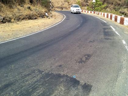 वाघेरा गाव ओलांडल्यानंतर उत्कर्ष व्यायामशाळेपासून पुढे तीस-या वळणावर मुख्य रस्त्यावर आॅइल सांडले आहे. हे आॅईल वाहनचालकांच्या लक्षात येत नसल्यामुळे येथून मार्गक्रमण करताना दुचाकी घसरुन अपघात घडू लागले आहे. याबाबत अद्याप दुपारपर्यंत या निसरड्या रस्त्यावर माती टाकण्यात आलेली नव्हती. या रस्त्याला राज्य मार्गाचा दर्जा मिळालेला असून लहान-मोठ्या अवजड वाहनांसह आदिवासी गाव, पाड्यांना जोडणारा महत्त्वाचा रस्ता आहे. साधारणत: सहा ते सात किलोमीटरचा वाघेरा घाट हा अत्यंत वळणावळणाचा असून घाटात तीव्र धोकादायक वळणे आहेत. या घाटामध्येच एका वळणावर आॅईलसारखा द्रवरुप पदार्थ सांडल्याने रस्ता निसरडा बनला असून दुचाकी घसरु लागल्या आहेत.