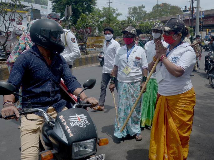 कोरोनाचा वाढता प्रादुर्भाव रोखण्यासाठी शासनस्तरावर विविध उपाययोजना केल्या जात असल्या तरी, ऐन संचारबंदी व जमावबंदी लागू असतानाही नागरिक विनाकारण घराबाहेर पडत असल्याने आता त्यांना रोखण्यासाठी तृतीयपंथीच रस्त्यावर उतरले आहेत. गेल्या तीन दिवसांपासून पोलिसांच्या खांद्याला खांदा लावून तृतीयपंथीय विनाकरण फिरणाऱ्यांना समज देत आहेत.