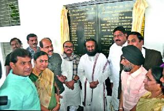 महापालिकेच्या पंचवटी विभागीय कार्यालयाच्या कोनशिला अनावरणप्रसंगी आर्ट आॅफ लिव्हिंगचे प्रणेते श्री श्री रविशंकर. समवेत शरद अहेर, डॉ. शोभा बच्छाव, माणिकराव ठाकरे, छगन भुजबळ, महापौर अशोक मुर्तडक, आयुक्त डॉ. प्रवीण गेडाम, उपमहापौर गुरुमित बग्गा आणि नगरसेवक विमल पाटील.