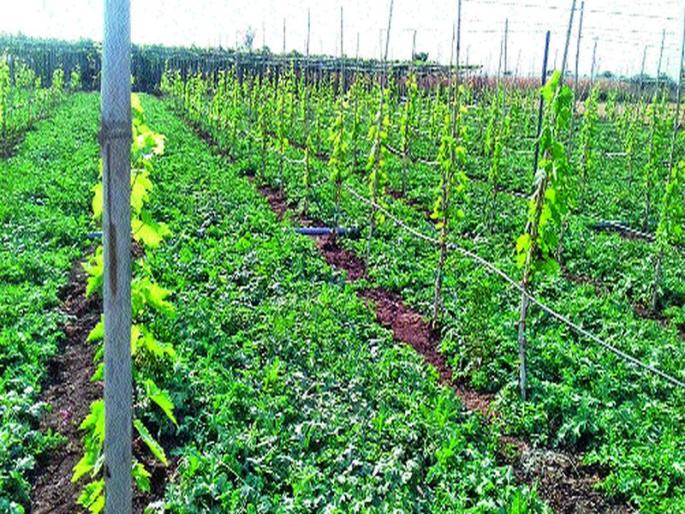 वर्षानुवर्षे पारंपरिक पद्धती आणि बाजारभाव यामुळे शेती नेहमीच तोट्यात येत असते. मात्र अनेक तरु ण शेतकरी शेतीकडे व्यावसायिक दृष्टिकोनातून पाहू लागले आहेत. त्यामुळे आधुनिक तंत्रज्ञान, पीक पद्धतीत बदल, पाण्याचे नियोजन, आंतरपीक पद्धतीचा वापर यामुळे शेती काही अंशी फायदेशीर ठरत आहे. एकाच पिकावर अवलंबून न राहता आंतरपीक पद्धतीचे नियोजन करून पर्यायी उत्पादन घेण्याकडे शेतकऱ्यांचा कल वाढला आहे. भेंडाळी येथील तरुण शेतकरी शरद कमानकर यांनी द्राक्षबागेतील दोन सºयांमधील ९ फूट अंतरामध्ये कलिंगडांची लागवड केली आहे. द्राक्ष लावल्यानंतर किमान दोन वर्षे शेतकºयांना ते सांभाळावे लागते. दरम्यानच्या काळात झाडे पाच फूट उंचीची करणे, मंडप करणे, परिपक्व काडी तयार करून फळ धारणा तयार केली जाते. त्यासाठी प्रचंड प्रमाणात खते, औषधे द्यावी लागतात. यासाठी खूप खर्च येतो. शिवाय दोन वर्षे कोणतेही उत्पादन होत नाही. अशावेळी द्राक्षबागेसाठी होणारा खर्च किमान वसूल व्हायला हवा, या धोरणातून परिसरात नसलेले वेलवर्गीय कलिंगडाचे पीक आंतरपीक म्हणून कमानकर यांनी आपल्या एक एकर द्राक्षबागेत घेतले.कलिंगड फारसे या परिसरात होत नाही तरीदेखील मिल्चंग पेपर, ड्रीप, यावर कलिंगडाची लागवड केली असून, पीक खूपच बहरले आहे. आजच्या बाजारभावात कमानकर यांना नक्कीच चार पैसे मिळणार असून, द्राक्ष पिकाच्या वाढीसाठी येणारा खर्च त्यातून भागवता येणार आहे. शरद कमानकर हे आपल्या शेतीत नेहमीच विविध प्रयोग करत असल्याने शेती फायद्यात रहात आहे. परिसरात कलिंगडाची लागवड आणि द्राक्षबागेतील आंतरपीक यामुळे चर्चेचा विषय ठरत आहे. दोन महिन्यांत कलिंगड परिपक्व झाले असून, पुढील आठवड्यात बाजारात विक्रीसाठी नेणार आहे. एक एकर क्षेत्रावर दोन हजार रोपांची लागवड केली आहे. आज किमान ८० ते ९० टन उत्पादन मिळण्याची शक्यता आहे. आज किमान ६ ते ८ रु पये किलो या भावाने विक्र ी सुरू आहे.