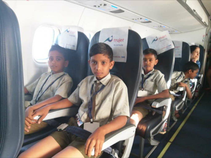 विमानाने प्रवास करणारी फांगदर, खामखेडा ता. देवळा शाळेची मुले.