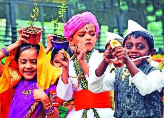 आषाढी एकादशीनिमित्त शहरातील शाळा-शाळांमध्ये बालगोपाळही विठू नामात तल्लीन झाले. वारकऱ्यांची वेशभूषा आणि माउलीची प्रतीकात्मक पालखी खांद्यावर घेत शालेय विद्यार्थी वारीची अनुभूती घेत आहेत. वारकऱ्यांच्या वेशभूषेतील ही बालके जणू विठू नामाच्या शाळेत तल्लीन झाली आहेत.