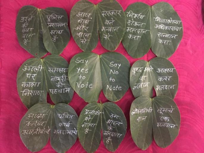 आपट्याच्या पानांवर संदेश लिहून मतदान जागृती