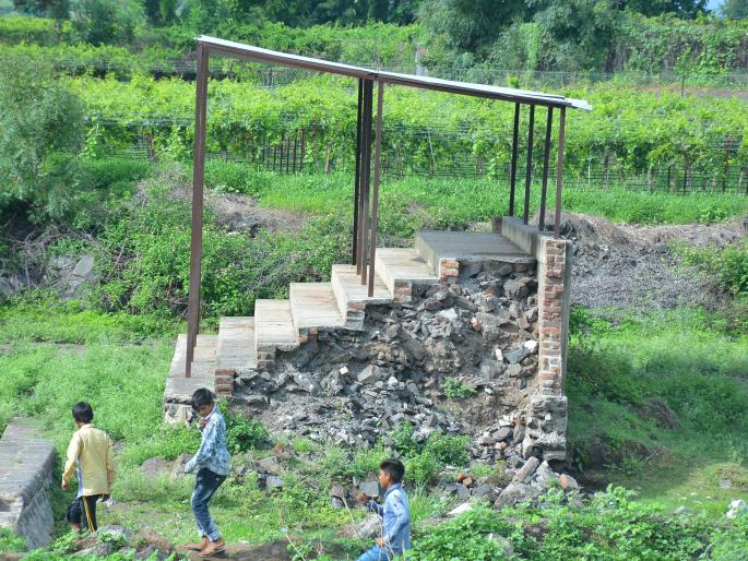 स्मशानभूमीच्या बैठक शेडची भिंत कोसळली