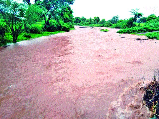 वटार : परिसरातील गावांना शेती सिंचनासाठी महत्त्वाची असलेली हत्ती नदी दुथडी भरून वाहत असल्याने परिसरातील शेतकऱ्यांमध्ये समाधानाचे वातावरण पसरले आहे.