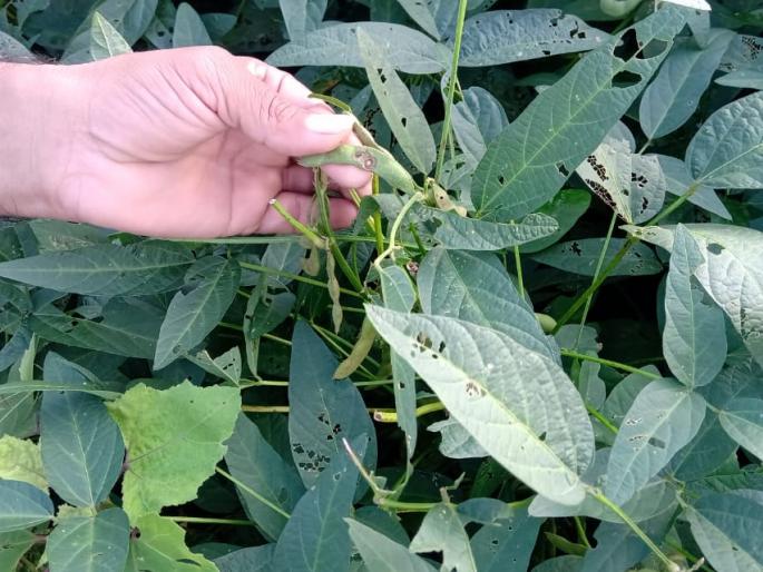 सुरु वातीपासूनच समाधानकारक पाऊस पडत असल्याने पिके चांगली आली मात्र पिकांची फक्त वाढच झाली आहे. विविध किडी व रोगांमुळे सोयाबीनला शेंगा कमी आल्या असून आलेल्या शेंगाही अळींनी कुरतडल्यामुळे उत्पन्नात मोठी घट येणार आहे.