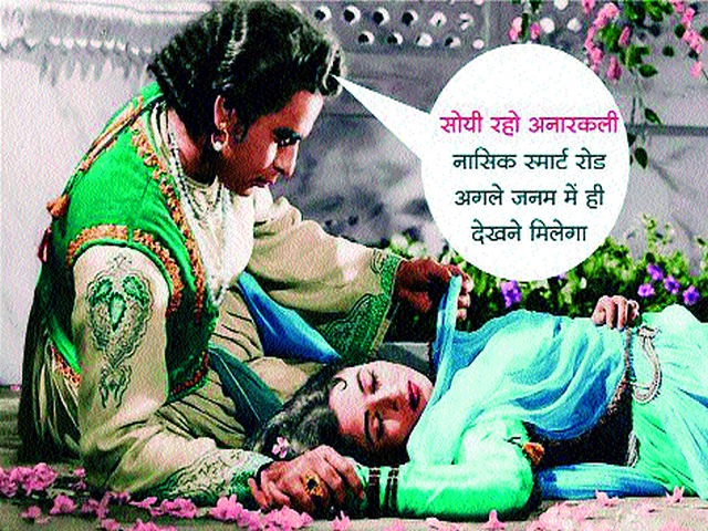 सब मर जायेंगे, सिर्फ नाशिक स्मार्टरोड का काम चालू रहेगा....सोयी रहो अनारकली! नासिक स्मार्टरोड अगले जनम में ही देखने मिलेगा...! स्मार्टरोडचे काम आणि दोन ते तीन वर्षे थांब, असा कारभार दिल्याने आता त्र्यंबकनाका ते अशोकस्तंभ हा पथदर्शी स्मार्टरोड संतापाबरोबरच चेष्टेचा विषय ठरला आहे.