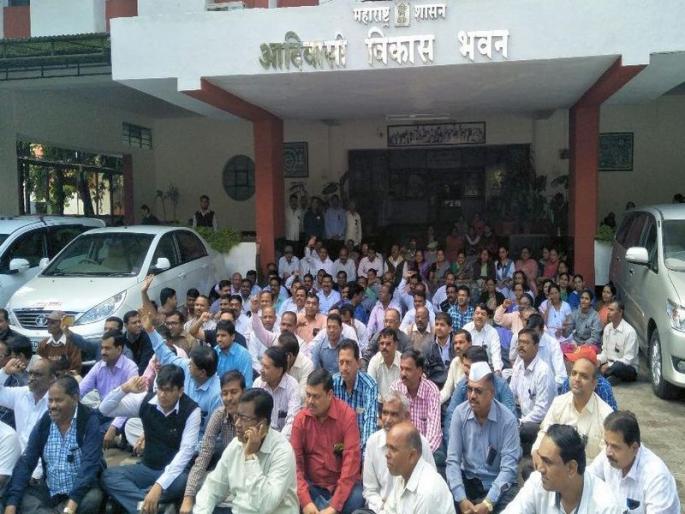 माजी आमदाराच्या दादागिरीच्या निषेधार्थ नाशिक आदिवासी विकास भवनातील अधिकारी-कर्मचा-यांचे काम बंद आंदोलन