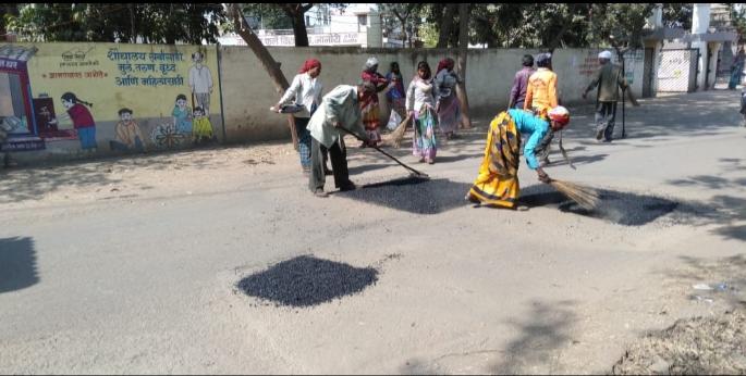 जानोरी ते वरवंडी रस्त्याचे खड्डे बुजविण्याचे काम सुरू