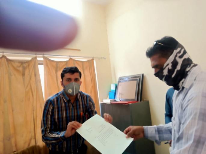 तालुका कृषी अधिकारी बी. जी. पाटील यांना निवेदन देतांना शेतकरी दर्शन केंगे.