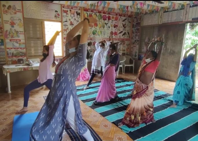 देवगावच्या अंगणवाडीत महिलांना योगाचे धडे