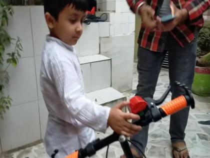नवी दिल्ली - देशभरात चोरीच्या अनेक घटना या सातत्याने समोर येत असतात. अनेकदा लोक पोलिसांत तक्रार दाखल करायला घाबरतात. मात्र आता एका 4 वर्षांच्या चिमुकल्याने न घाबरता आपल्या तक्रारीसाठी थेट पोलीस स्टेशन गाठल्याची घटना समोर आली आहे. चिमुकल्याची तक्रार ऐकून पोलीसही चकीत झालेले पाहायला मिळाले. ध्रुव असं या मुलाचं नाव असून त्याच्या सायकलची घंटी चोरीला गेली आहे. घंटी चोरीला गेल्याचं लक्षात येताच ध्रुवने पोलिसांत धाव घेतली.