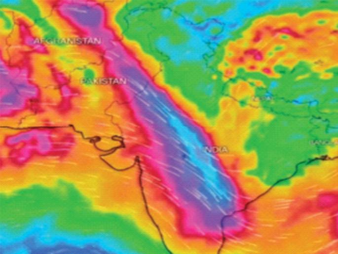 नवी दिल्ली : उत्तर भारतासह शेजारील देशांमध्ये सध्या निसर्गाचा एक अत्यंत दुर्मीळ आणि अजब चमत्कार पाहायला मिळत आहे. पश्चिमी विक्षोभामुळे अफगाणिस्तान, पाकिस्तान आणि भारत अशा तीन देशांच्या सीमा ओलांडणारा तब्बल १,००० किलोमीटर लांबीचा पावसाचा पट्टा तयार झाला आहे. यामुळे मार्च महिन्यातच मे महिन्यासारखी उष्णता अनुभवणाऱ्या कोट्यवधी जनतेला मोठा दिलासा मिळाला आहे.
