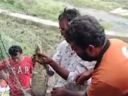 जाळ्यामध्ये मगरीचं पिल्लू अडकलेलं असल्याचं पाहिल्यानंतर कुणीतरी प्राणीप्रेमी चमन सिंह यांना त्याची सूचना दिली. त्यानंतर ते घटनास्थळी पोहोचले. त्यांनी ते जाळं कापून मगरीच्या पिल्लाला बाहेर काढलं. त्यानंतर त्या पिल्लाला सुरक्षितपणे नेचर पार्कमध्ये सोडण्यात आलं. या दरम्यान तिथे लोकांची मोठ्या प्रमाणावर गर्दी झाली होती. लोकांनी नंतर या घटनेचे फोटो आणि व्हिडीओ व्हायरल केले.
