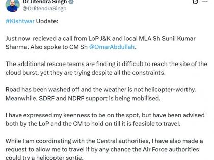 याबाबत अधिक माहिती देताना केंद्रीय मंत्री जितेंद्र सिंह यांनी सांगितले की, या घटनेबाबत मला जम्मू काश्मीर विधानसभेचे विरोधी पक्षनेते आणि स्थानिक आमदार सुनील कुमार शर्मा यांनी माहिती दिली. त्यानंतर मी किश्तवाडचे उपायुक्त पंकज कुमार शर्मा यांच्याशी दुर्घटनेबाबत चर्चा केली. चिशोटी परिसरात ढगफुटीची मोठी घटना घडली आहे. त्यामुळे मोठ्या प्रमाणावर जीवित आणि वित्तहानी झाली असण्याची भीती आहे. बचाव पथकाला घटनास्थळाकडे रवाना करण्यात आले आहे. तसेच झालेल्या नुकसानाचा आढावा घेण्यासाठी आणि वैद्यकीय मदत पुरवण्यासाठी व्यवस्था केली जात आहे.